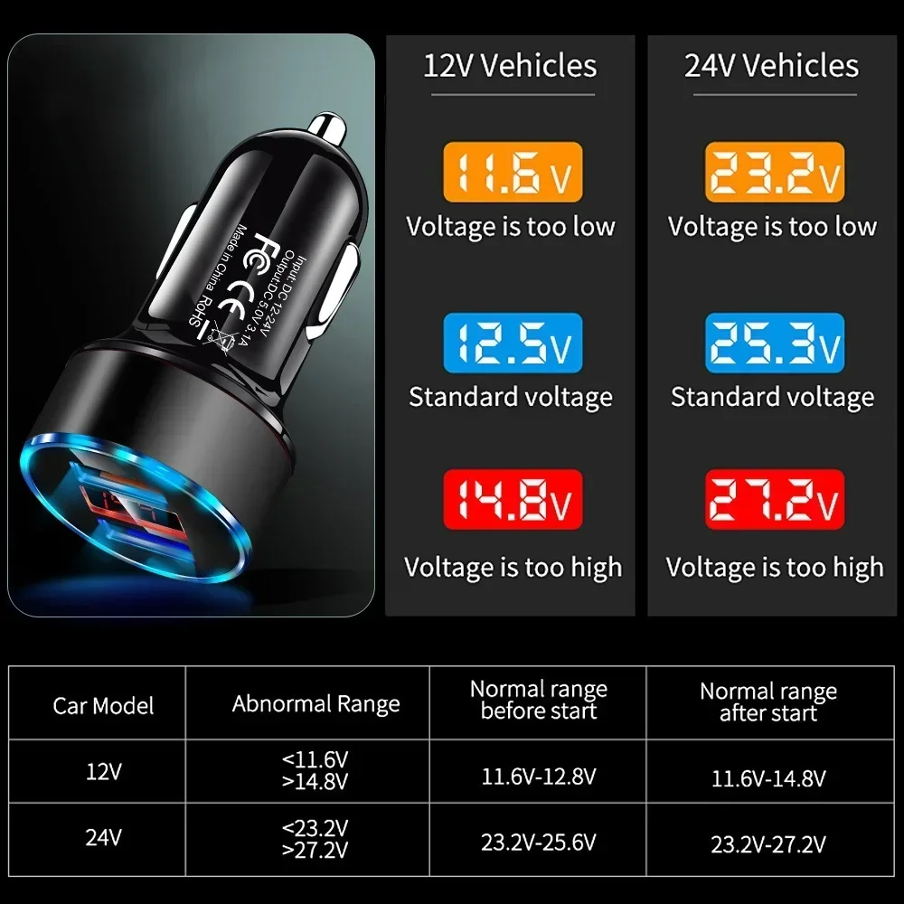 4. The voltage digital display shows the real-time voltage, and you can check the battery status of the car